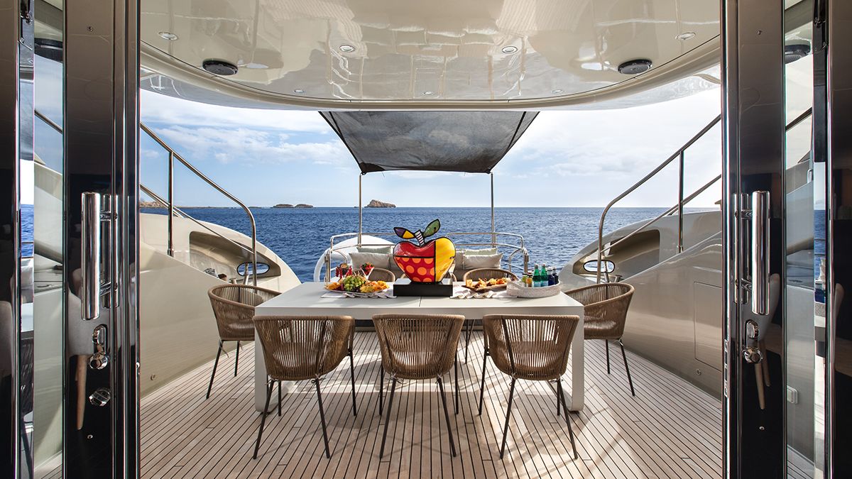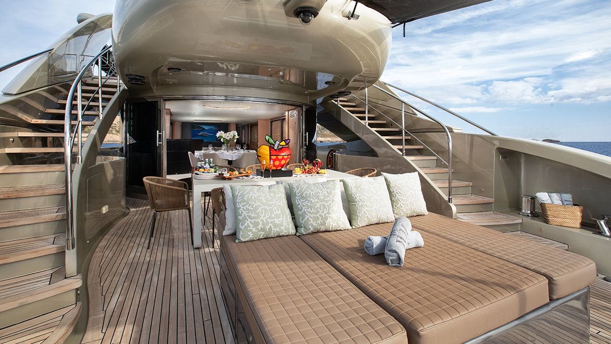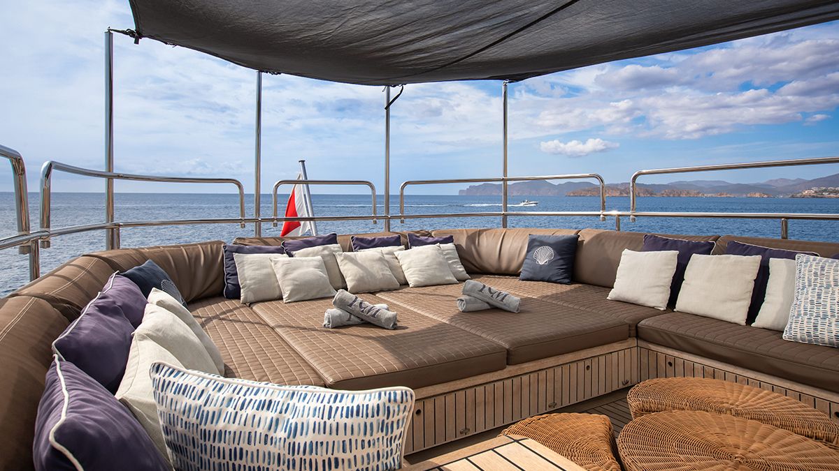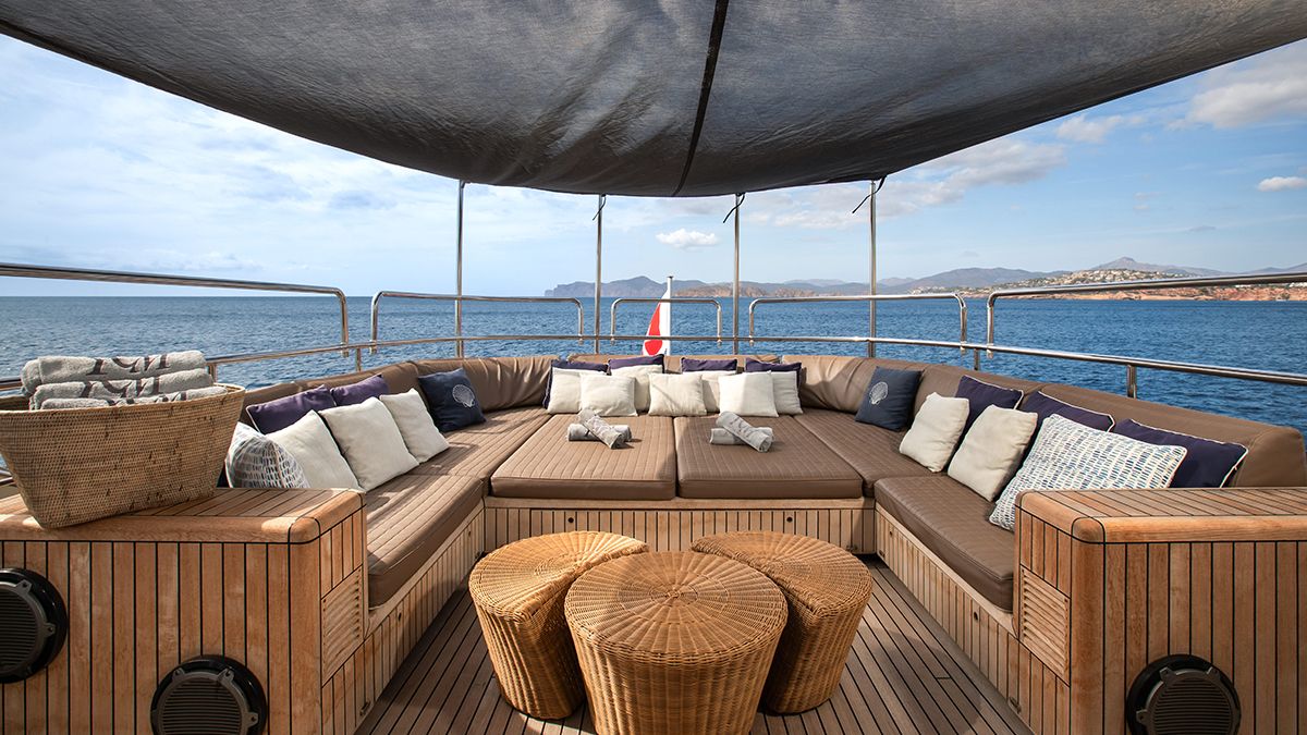 Achterdeck mit Al-Fresco-Dining-Area – ideal für Dinnerpartys mit Blick auf das Meer