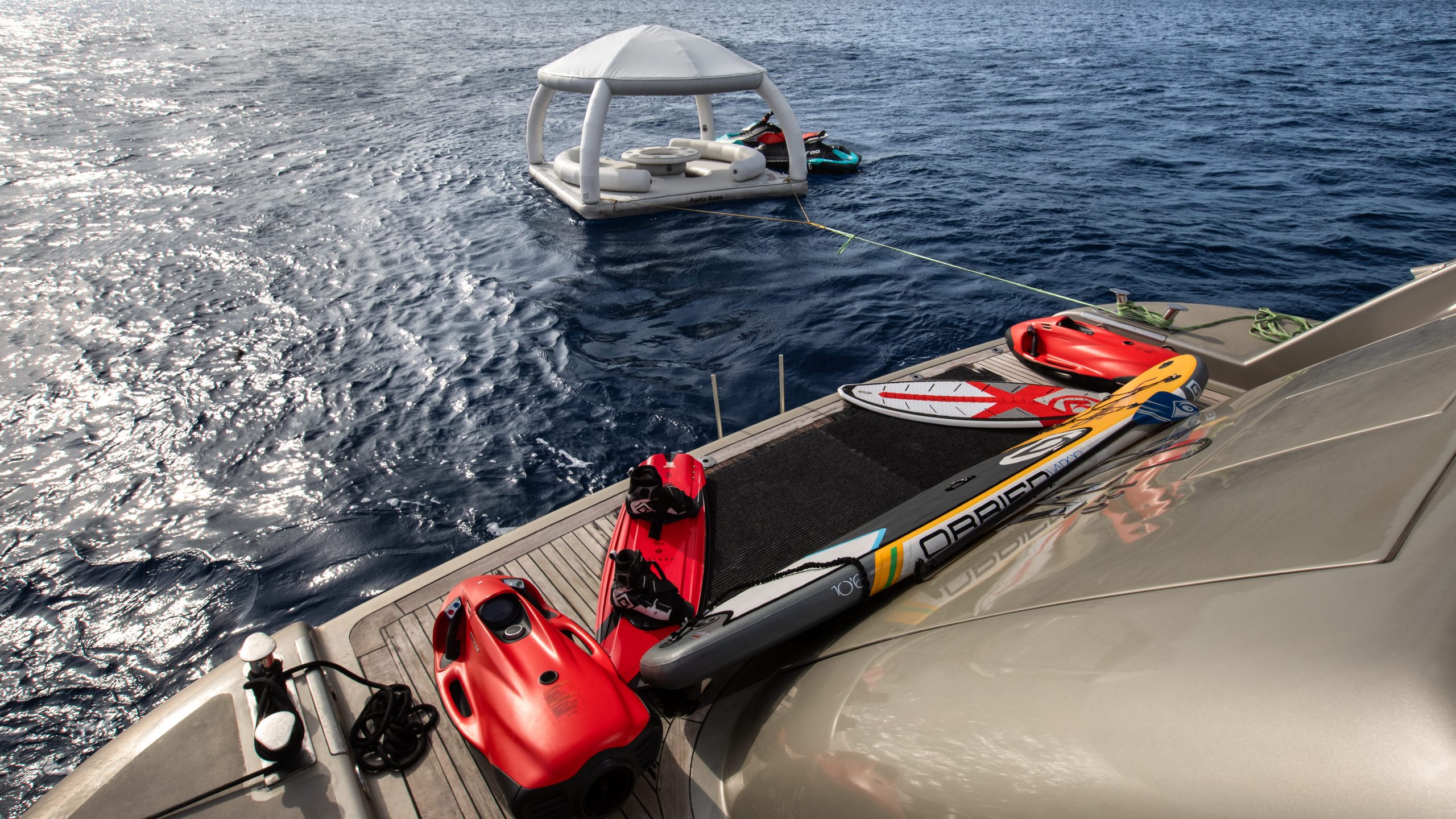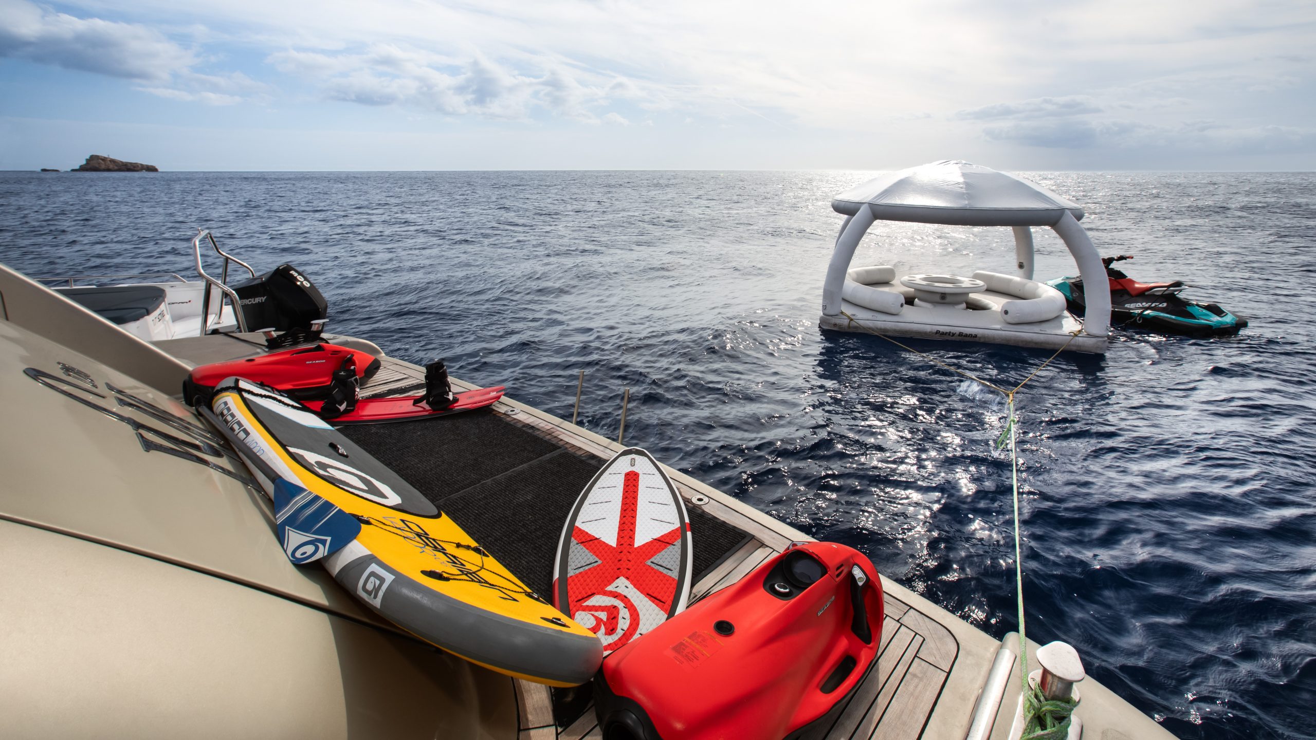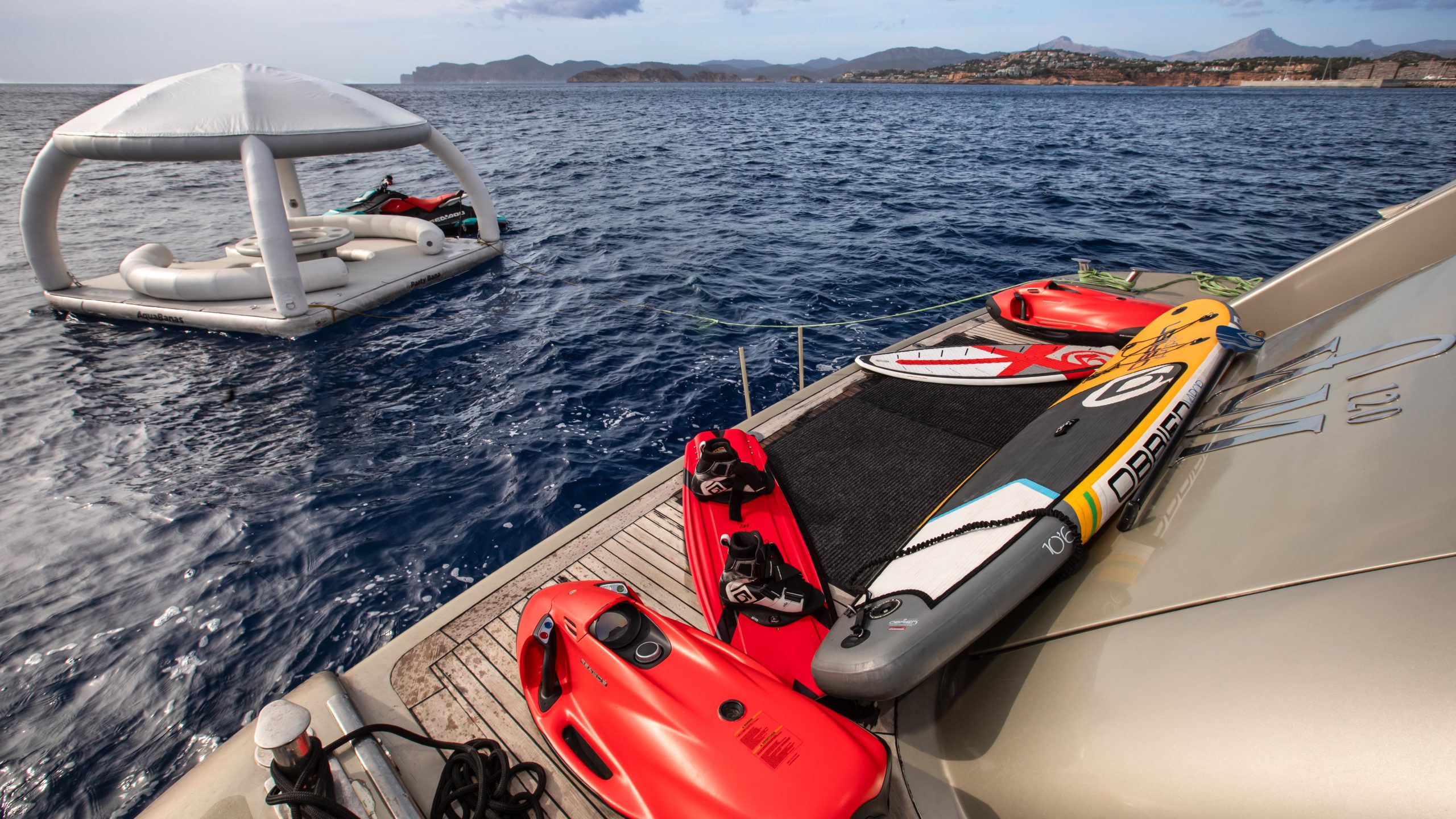 Umfangreiche Auswahl an Wasserspielzeug, darunter Jet Skis, Seabobs und Paddleboards
